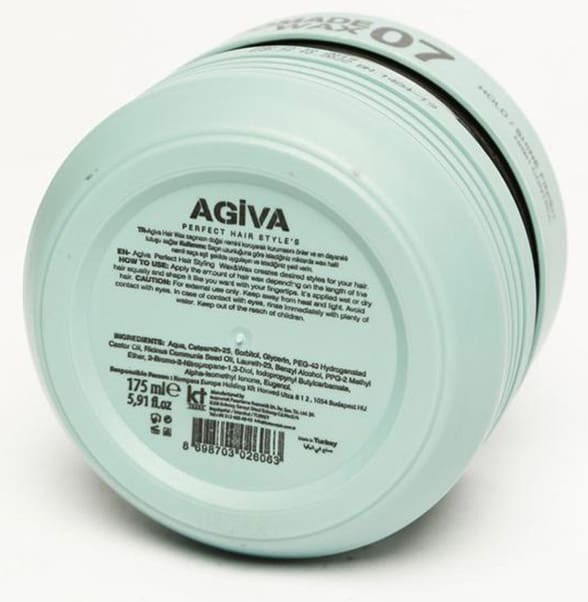 حالت دهنده مو آگیوا مدل Pomade Wax 07 حاوی کراتین هیدرولیز شده و روغن کرچک می باشد.