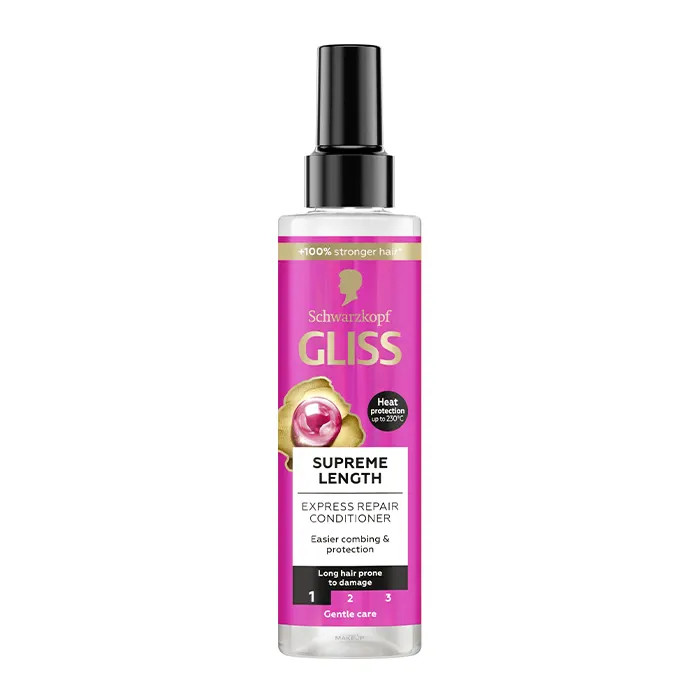 اسپری کرم مو دو فاز گلیس بنفش مدل SUPREME LENGTH برای استفاده کسانی که موهای بلند آسیب دیده دارند، ایده آل است. فرمولاسیون منحصر به فرد آن با سرم کراتین و روغن های احیاء کننده مو غنی شده است، از این رو برای سلامتی موهای بلند مناسب ترین محصول مراقبتی است. این محصول مواد مغذی مو را فراهم کرده و به آنها استحکام می بخشد. همچنین موها را حالت داده و آن ها را سالم، ابریشمی و درخشان می گرداند.