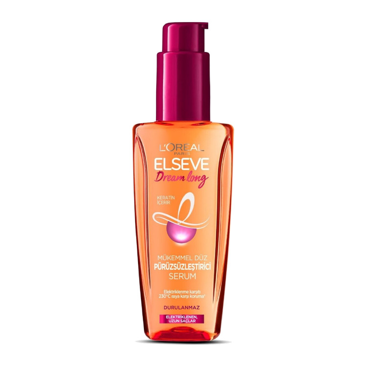 و سپس موهایتان را حالت دهید. - مقدار مناسبی از سرم مو کراتین لورآل مدل Dream Long مخصوص موهای بلند وز حجم 100 میل را بر روی موهای خشک برای جلوگیری از وز و پف شدن موها بمالید و موهایتان را به آرامی ماساژ دهید.