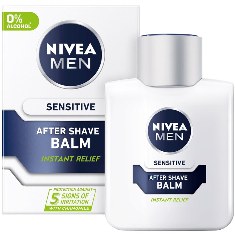افتر شیو بالم نیوا مدل Nivea Sensitive مخصوص پوست های حساس بوده و پنج نشانه تحریک پوست از جمله سوزش، خارش، التهاب، قرمزی و خشکی را برطرف می کند. افتر شیو سنسیتیو نیوا حاوی عصاره بابونه و هاماملیس (فندق افسونگر) جهت تسکین و آرامش بخشی پوست می باشد و توسط فرمول بدون الکل، رطوبت رسانی و خنک کنندگی طولانی مدت را برای پوست به ارمغان می آورد.