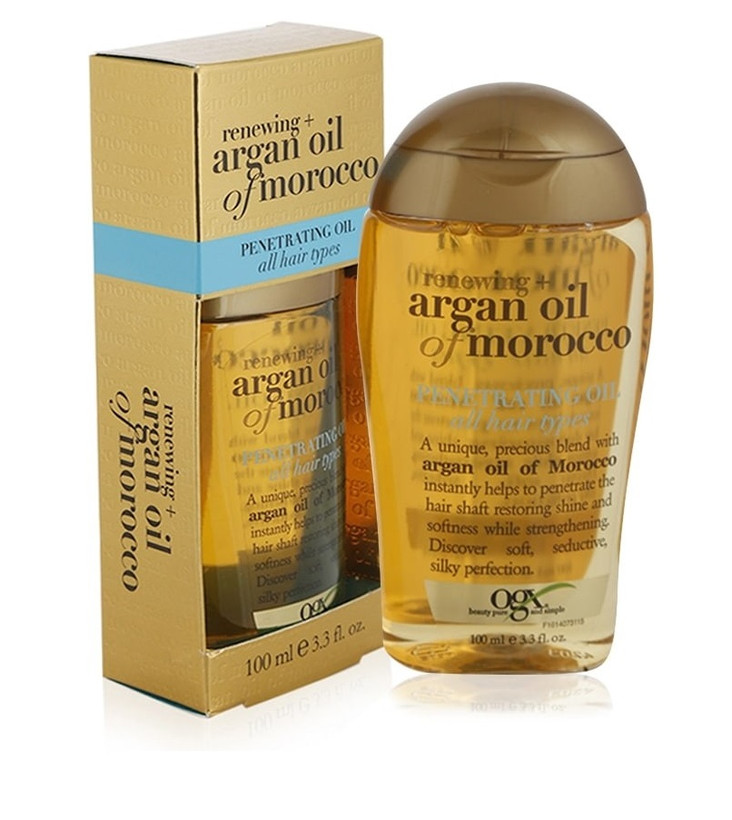 روغن مو شگفت انگیز آرگان با ویژگی های خاصی که دارد نه تنها به رطوبت رسانی موهای شما کمک می کند بلکه درخشش خاصی را برای موهای شما به ارمغان می آورد.روغن آرگان ogx مناسب برای انوع مو، به عنوان یکی از بهترین تغذیه کننده های مو بشمار می رود. استفاده از این روغن می تواند موهای آسیب دیده شما را ترمیم کند؛ علاوه بر این می تواند حالت وزی و مو خوره شما را درمان کند و درخشندگی و فرمی عالی به موهای شما باز می گرداند. این روغن او جی ایکس مناسب انواع مو، کاملاً طبیعی و خالی از هرگونه مواد شیمیایی می باشد و دارای حجم 100 میلی لیتر است.