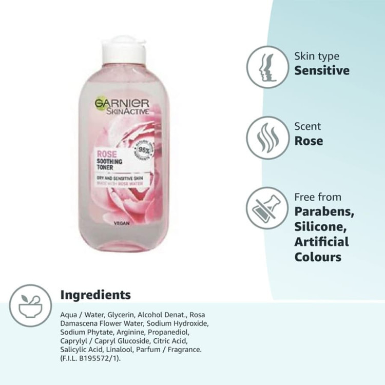 تونر تسکین دهنده گل رز گارنیه Garnier Rose Toner حجم 200 میلی لیتر