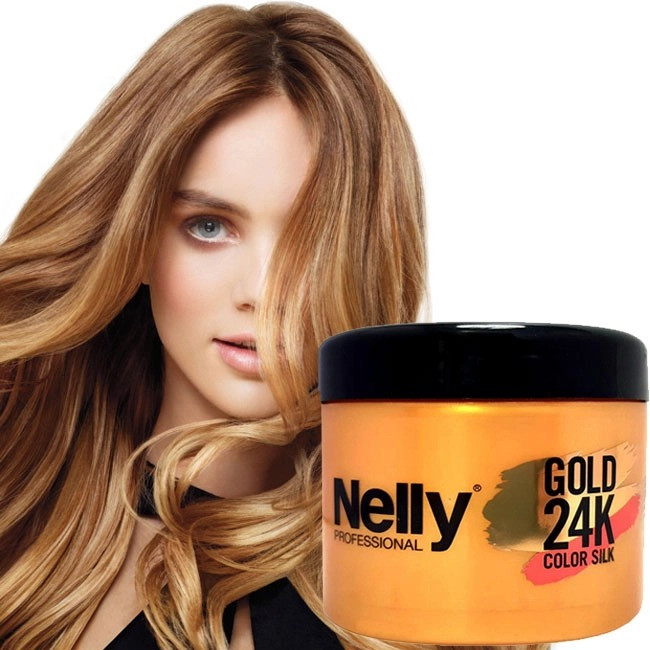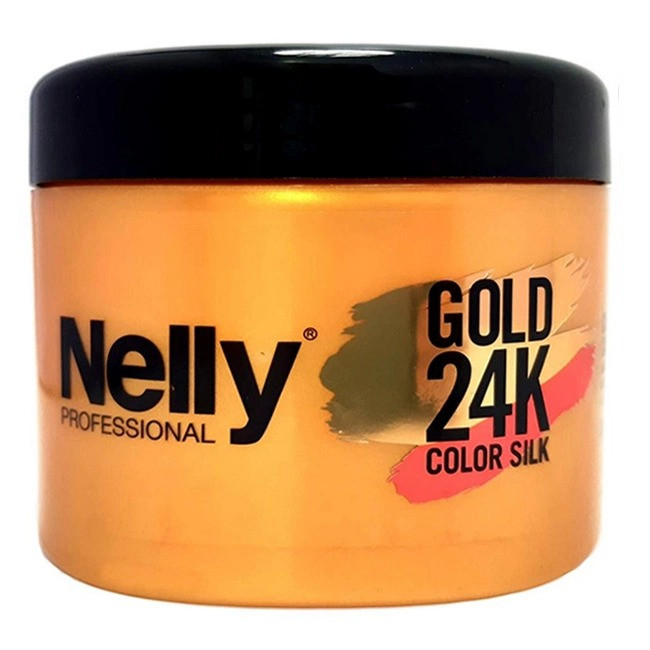 ماسک موهای رنگ شده از لاین گلد نلی پروفشنال Nelly Professional Color Silk ترکیب شده با نرم کننده جهت نرم کنندگی هر چه بیشتر و درخشندگی موهای رنگ شده می باشد.این ماسک مو به لطف فرمولاسیون غنی از عصاره ها و ویتامین E به عنوان آنتی اکسیدان قوی، از رنگ مو در برابر شستشو محافظت می کند و باعث تثبیت و ماندگاری بیشتر آن می شود و از فیبر مو در برابر عوامل مخرب خارجی محافظت می کند. همچنین این ماسک به وضوح می تواند طول عمر رنگ را افزایش دهد. مواد تشکیل دهنده این ماسک مو روغن جوانه گندم و عصاره بابونه است که خاصیت تغذیه کنندگی و محافظتی را دارد. سری محصولات گلد نلی حاوی ذرات ریز طلای ۲۴ عیار بوده که ضمن جلوگیری از فرسودگی مو، موجب درخشندگی فوق العاده خیره کننده موها می شود.