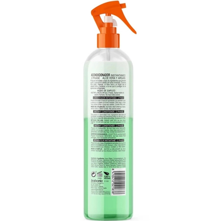 باباریا محصول جدیدی با نام اسپری دو فاز آلوئه ورا و روغن آرگان را برای محافظت از موهای شما ارائه کرده است. این اسپری دو فاز از موهای شما در مقابل اشعه مضر آفتاب محافظت میکند. اسپری دوفاز مو باباریا حاوی عصاره طبیعی آلوئه را و روغن آرگان است که مواد لازم جهت تغذیه عمیق مو و آبرسانی مو را فراهم می کند و بدین ترتیب ساقه موهای آسیب دیده و خشک را احیا و تقویت می کند. این اسپری یک نرم کننده سبک و فوری برای موهای خشک، شکننده و آسیب دیده است، همچنین به علت سبک بودن و عدم نیاز به آبکشی به صورت روزانه می تواند مورد استفاده قرار بگیرد. همچنین آلوئه را و آرگان موجود در اسپری، رنگ کدر شده مو را براق می کند و موجب افزایش درخشندگی موها می شود.