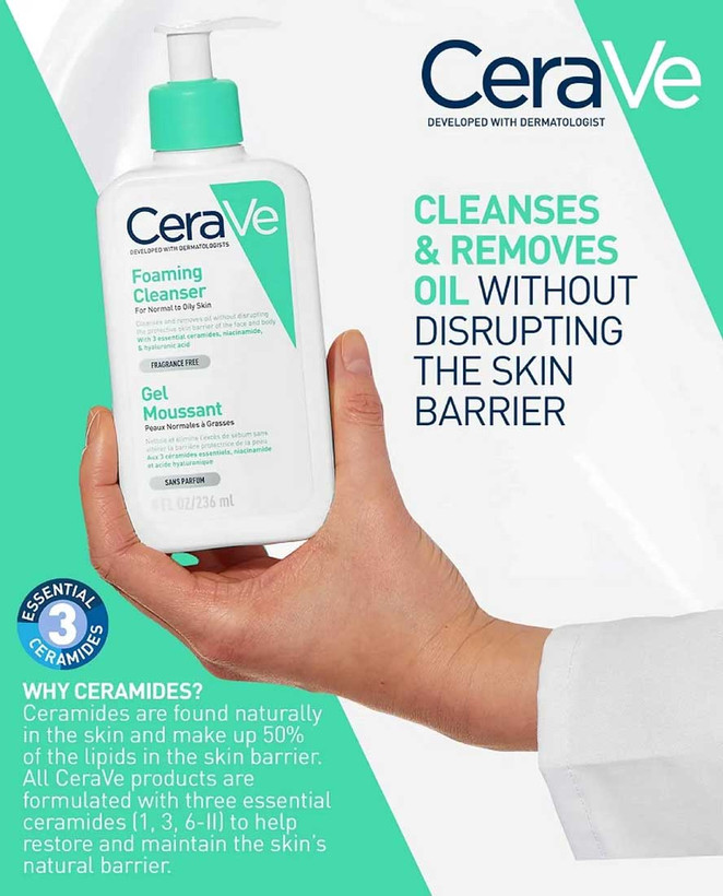 فوم شستشوی صورت سراوی برای پوست نرمال تا چرب، دقیقا یک شوینده ایدهآل برای پوست خواهد بود.فوم شوینده پوست نرمال تا چرب سراوی یک شوینده روزانه و ملایم است که برای پاک کردن آلودگی، ناخالصی و مواد آرایشی از روی پوست ایده آل است. به اندازه ای ملایم است که به سد دفاعی طبیعی پوست آسیبی وارد نکرده و در نتیجه سبب خشک، کدر و سفت شدن پوست نمی شود؛ همچنین چربی پوست را کنترل کرده و حاوی ترکیباتی است که به حفظ تعادل رطوبت پوست کمک می کند.فرمولاسیون این فوم شوینده سراوی حاوی 3 نوع سرامید ضروری، نیاسینامید و هیالورونیک اسید است؛ نیاسینامید چربی پوست را کنترل کرده و التیام بخش و تسکین دهنده است، هیالورونیک اسید رطوبت پوست را تامین کرده و سرامید ها به حفظ قوام و رطوبت پوست کمک کرده و از تبخیر آب آن جلوگیری می کنند.فوم ژل شوینده سراوی توسط متخصصان پوست ساخته شده، پوست را عمیقا تمیز کرده و چربی های اضافی را از بین می برد بدون اینکه آسیبی به پوست وارد کند. غیر کمدون زا است و منافذ پوستی را مسدود نمی کند. کاملا فاقد عطر است که در پوست های حساس تر موجب بروز حساسیت نمی شود.بلکه حاوی ترکیبات غیرچرب، ضدحساسیت و غیرمحرک بوده و حتی انجمن ملی اگزما (NEA) نیز از آن حمایت میکند. این فوم شستشوی سراوی علاوه صورت برای بدن نیز قابل استفاده می باشد.