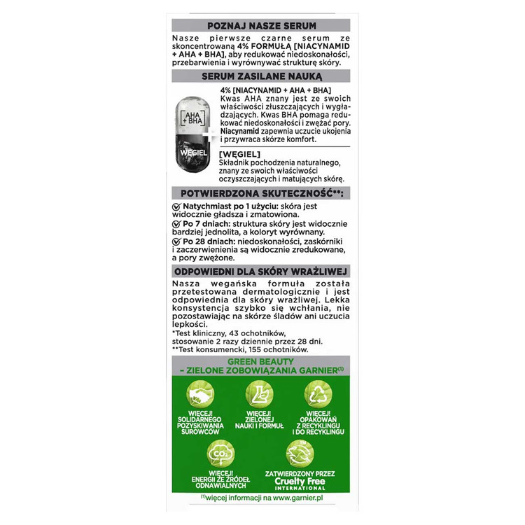 سرم لایه بردار زغال AHA+ BHA و نیاسینامید گارنیه 30ml