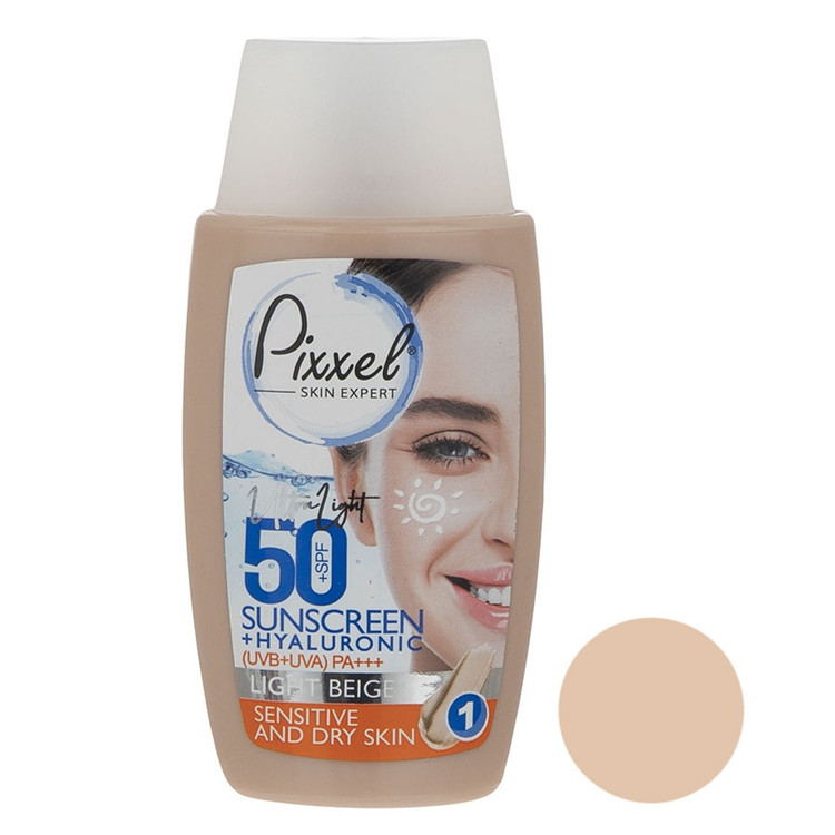 ضد آفتاب پیکسل پوست خشک رنگی، با اس پی اف 50 از پوست در برابر اشعه های مضرر آفتاب محافظت کرده و از آفتاب سوختگی پوست ممانعت می نماید.