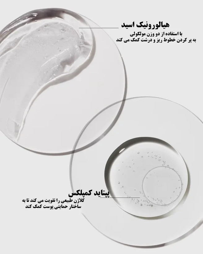 - اسید هیالورونیک: فرمول این کرم از دو وزن مولکولی اسید هیالورونیک استفاده می کند. این مرطوب کننده قوی به آبرسانی پوست شما کمک و ماندگار می کند، همچنین به بازگرداندن لطافت و صاف کردن خطوط ریز و خشک به وضوح کمک می کند.